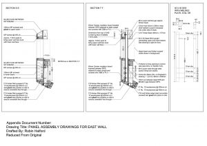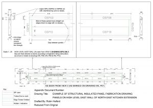 Fabrication drawing of structural insulated panels around a high level slot window.