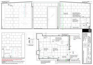 An example of a shower room design drawing clearly showing plumbing and tiling.