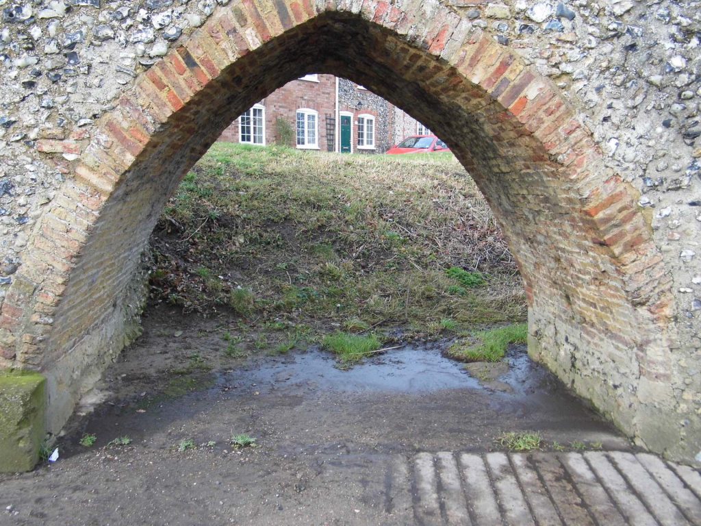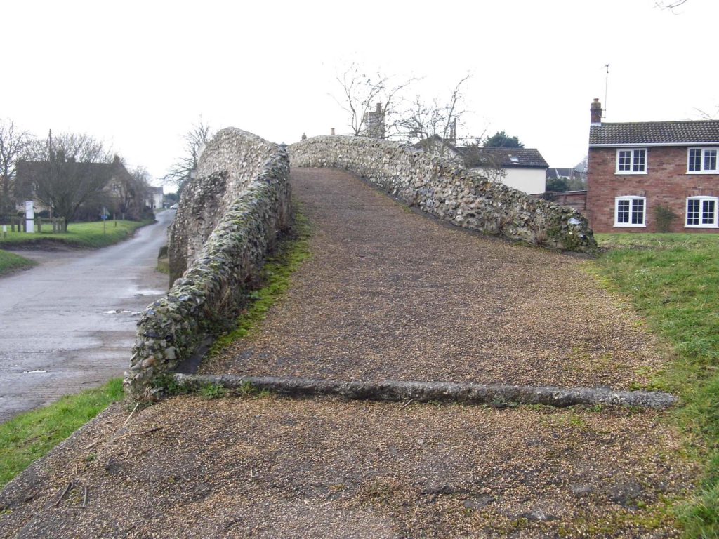 The smallest structure on my English Heritage survey list was this 15th-century packhorse bridge across the River Kennett. The bridge is built of flint and rubble, faced with brick. It stands on the old main route from Cambridge to Bury St Edmunds. Photos from my survey records.