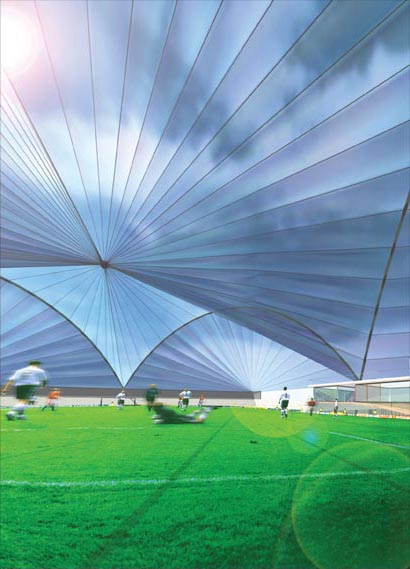 Using AutoCAD, 3D Studio Max, Photoshop and InDesign, I created these display images for a conceptual restrained arch football stadium. These were presented at the RIBA ‘Recreation by Design’ exhibition in London. Work commissioned by FBM Architects.